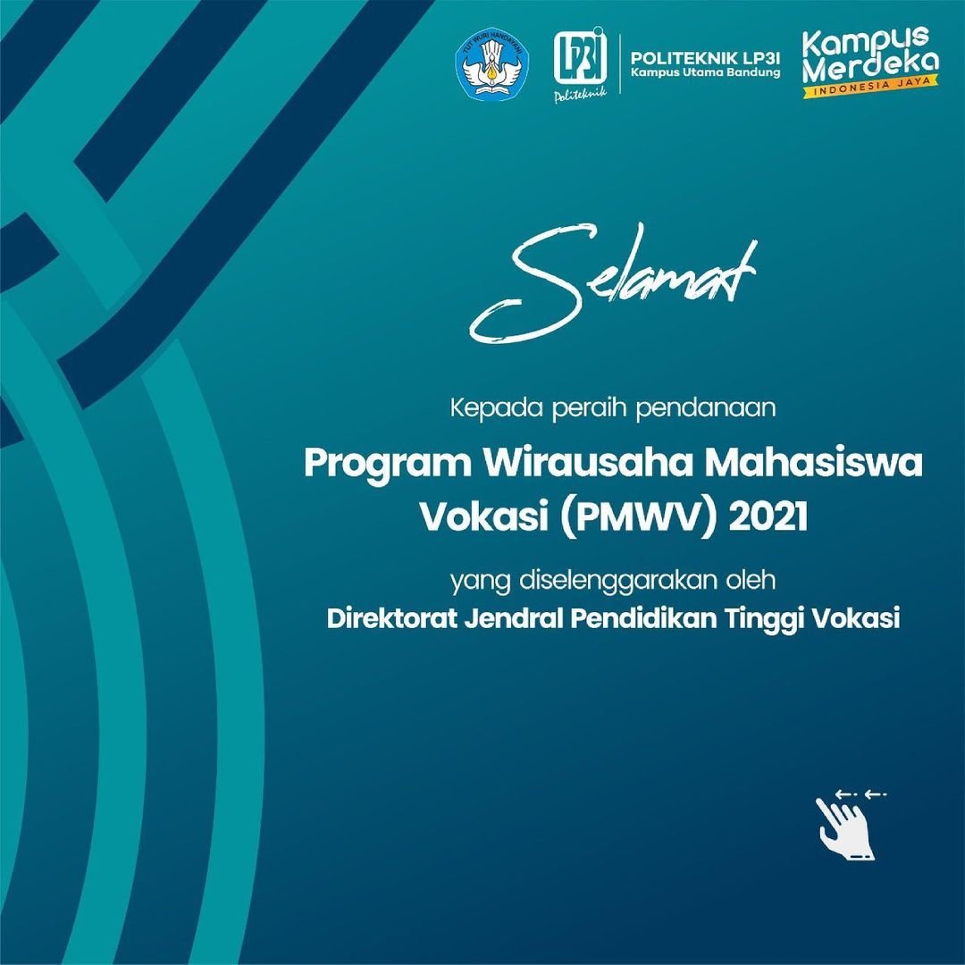 Bandung – Kabar membanggakan dari Program Wirausaha Mahasiswa Vokasi (PWMV). Sepuluh (10) orang mahasiswa Politeknik LP3I Bandung dinyatakan lolos mendapatkan pendanaan Program Kreativitas Mahasiswa (PKM) melalui proposal yang diajukan. Dalam rangka mendorong munculnya wirausahawan dari mahasiswa pada Perguruan Tinggi Penyelenggara Pendidikan Selengkapnya