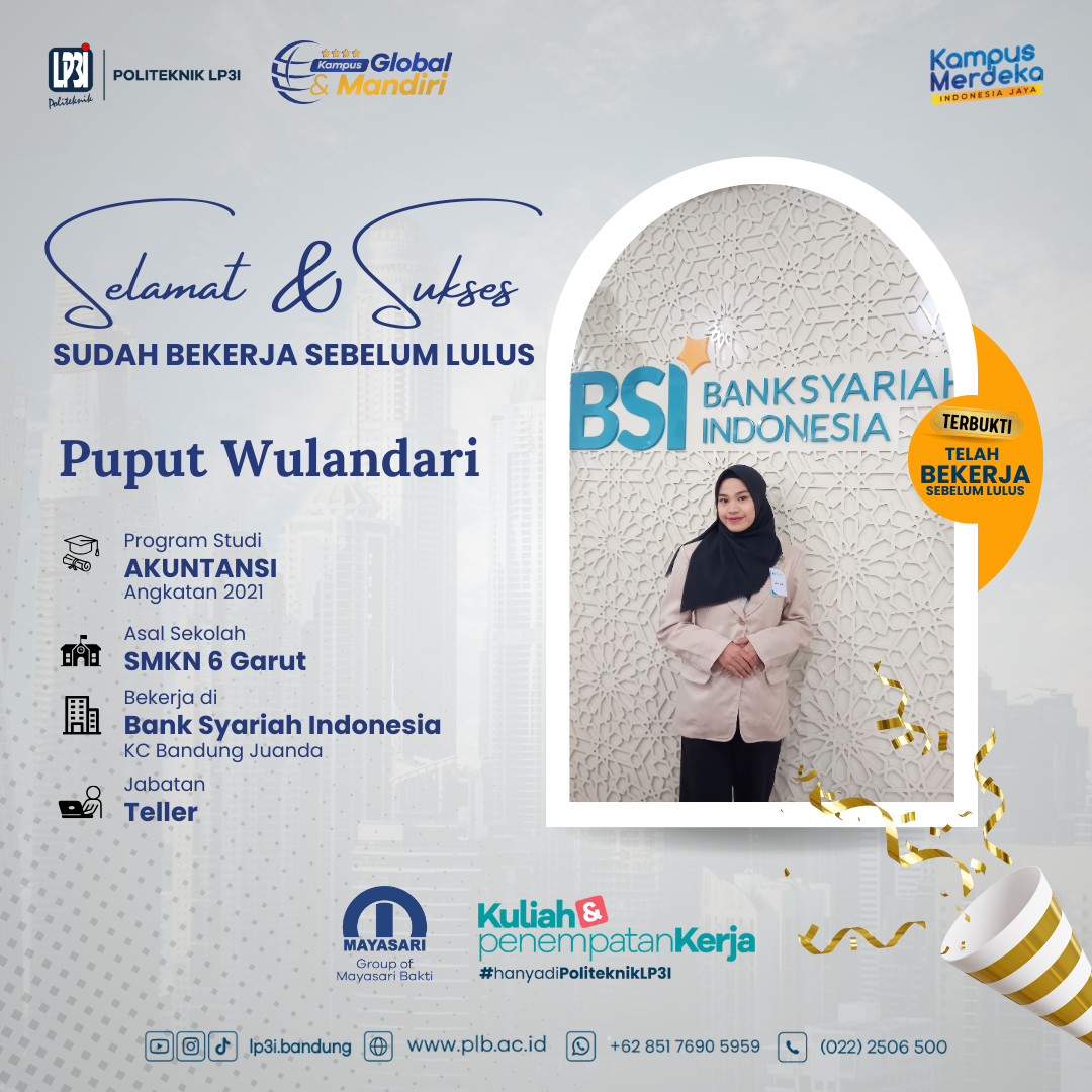 Selamat kepada Puput Wulandari, mahasiswa angkatan 2021 program studi Akuntansi yang sudah diterima bekerja di Bank Syariah Indonesia.